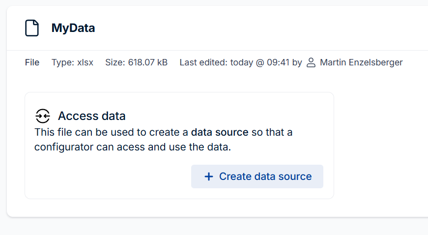 While you can create a single data source asset from such a file, we strongly recommend that you instead upload the file as a file asset first. This will allow you to create multiple data sources based on it and update them all at once whenever you upload a newer version of your file. We will walk you through this process in the next section.
