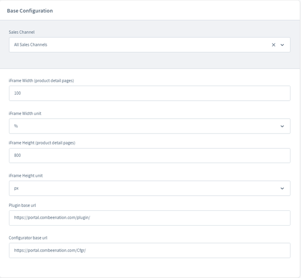 The configurator must be created/hosted on the Combeenation platform, and you must ensure that the Shopware 6 shop has been added to it. Further details can be found in the Combeenation platform documentation (see below)
