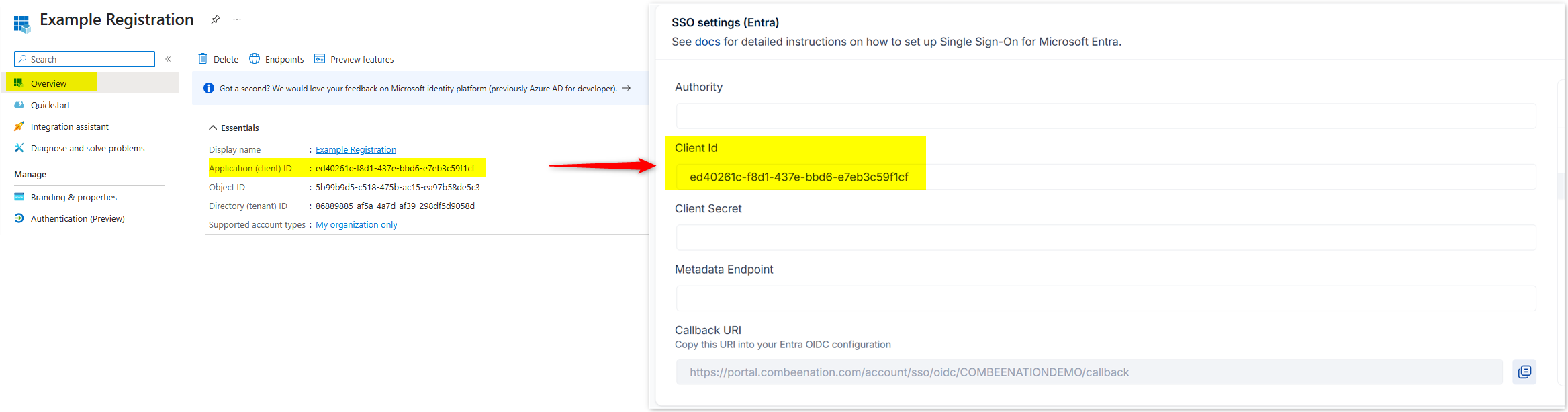 Paste it into the Client Id field of the Combeenation SSO settings page.