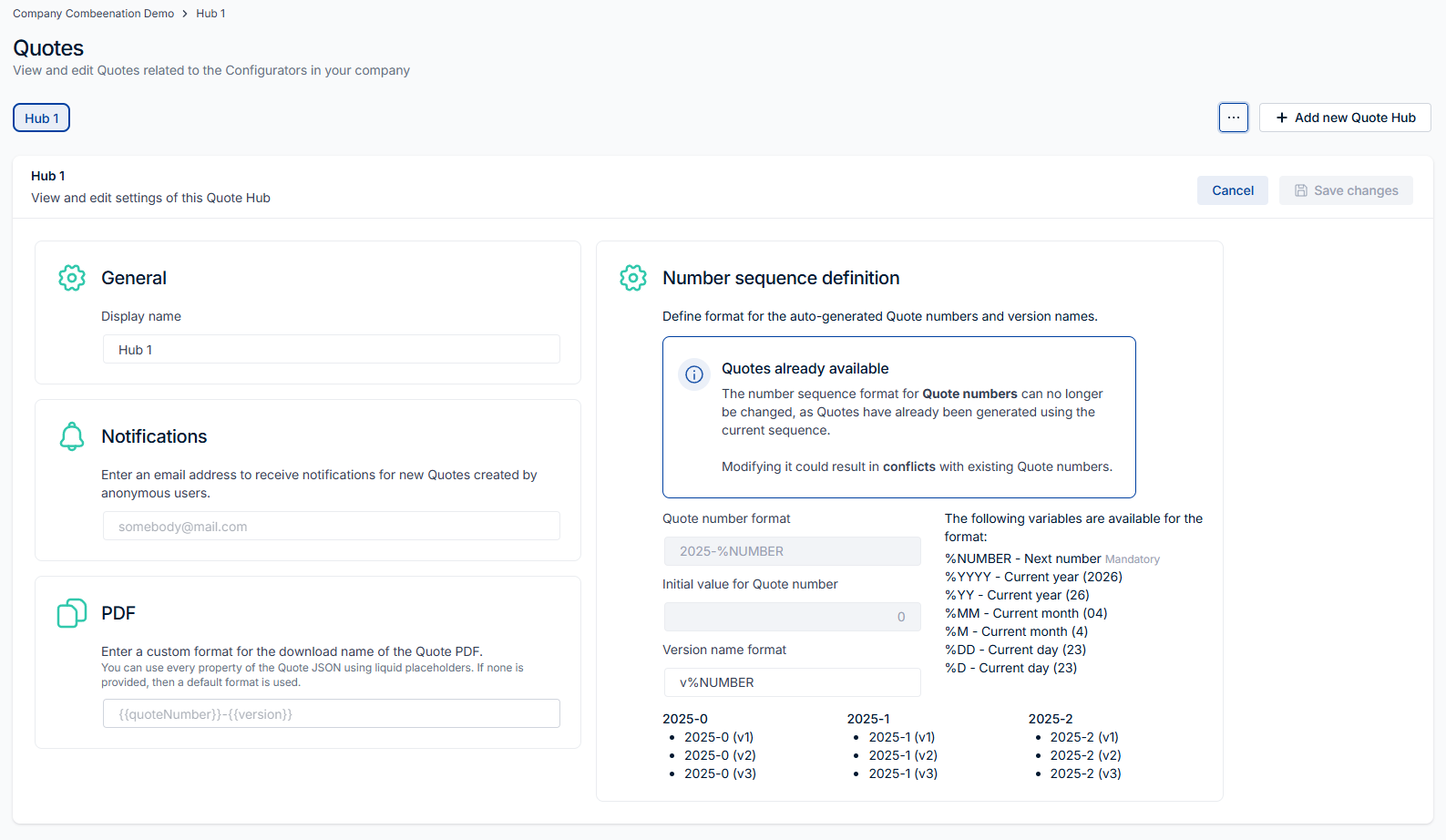 In addition, it's also possible to define a custom format of the quote PDF file name.